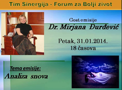 Dr Mirjana Đurđević govori o značaju snova u razumevanju podsvesnog uma. Ističe da snovi predstavljaju ogledalo unutrašnjeg sveta, otkrivajući emocije, strahove i želje pojedinca. Tumačenjem snova, ljudi mogu steći dublji uvid u lične probleme i doneti promišljene odluke u svakodnevnom životu. Dr Đurđević naglašava i terapeutsku vrednost snova, navodeći da oni mogu doprineti emocionalnom isceljenju i samospoznaji.